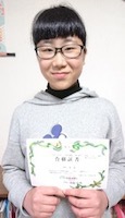 3級合格おめでとう。お友達とのコミュニケーションや先生のアドバイスを大切にして、楽しく学べています。英語を楽しみ、自信をもって次の目標に向かって下さい。