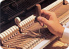 整音……ピッカーとよばれる針を刺したりしてハンマーヘッドを整え、音量・音色・全体の音のバランスを整えます。