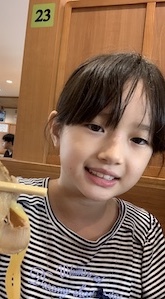 杏奈ちゃん頑張ったね。レッスンでは新しい会話表現を積極的に練習し、お友達との会話やゲームを楽しみながら英語への興味をどんどん深めていますね。これからも、色んな英語経験をしながらみんなで英語ワールドの旅を続けましょう。私も頑張ってガイドしていきたいと思います!
