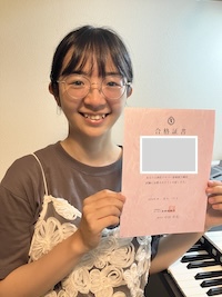 今回初めて指導グレードを受け、合格することが出来て大変嬉しいです。筆記試験は、学校でも音楽理論や和声、聴音の授業があるため自信がありましたが、実技試験で緊張のあまり音が取れなかったり楽譜が追えなかったりと失敗がありました。合格通知が来るまでも、追試に備えて失敗した項目を練習し直すなどして過ごしたくらいです。試験が終わって2週間ほど、毎日のように家のポストを確認して待ち続け、ヤマハからの封筒と「合格」という字を見たときの感動や衝撃は忘れられません。ここまで教えていただいた先生、見守ってくれた母にも感謝をして、これからも頑張っていきたいです。